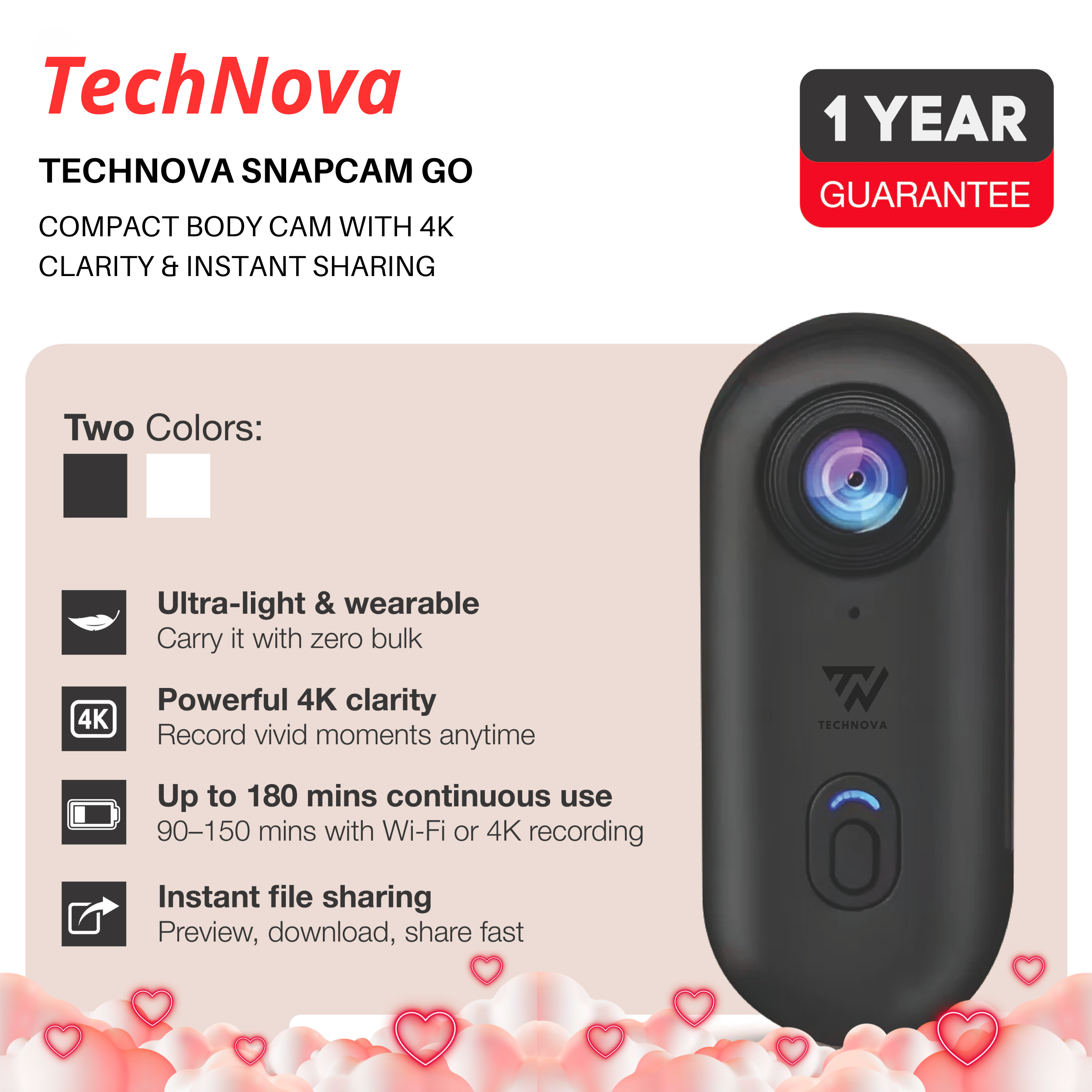SnapCam GO – Compact 4K Hands-Free POV Camera