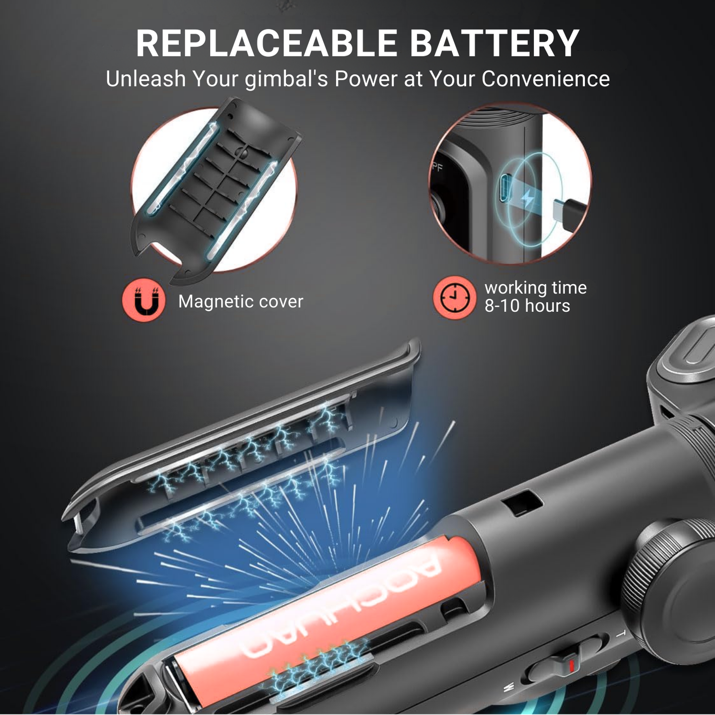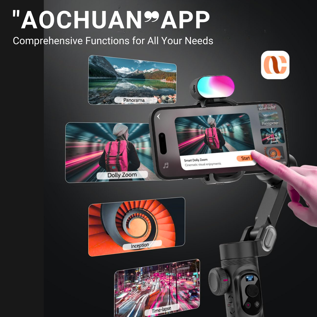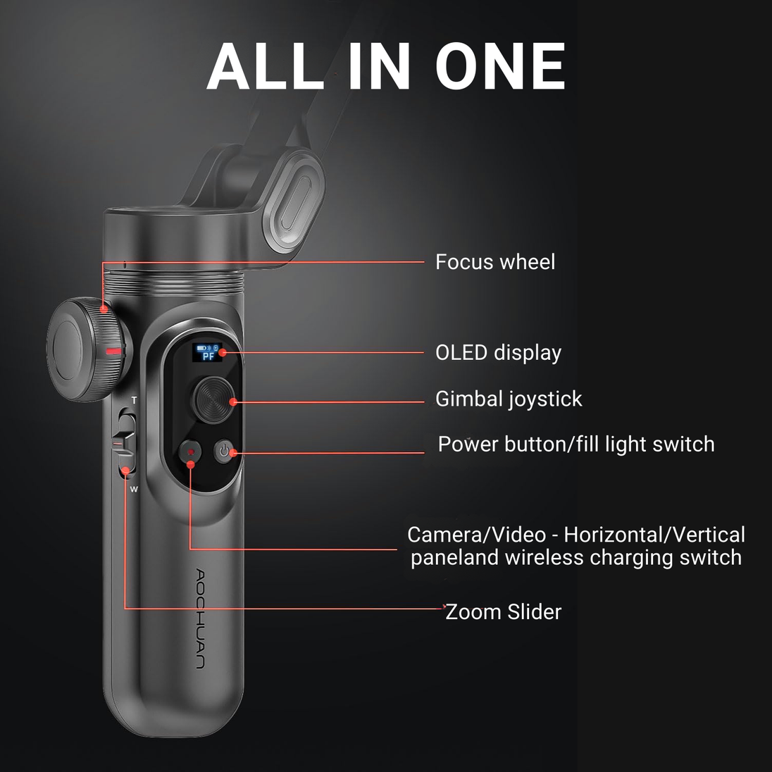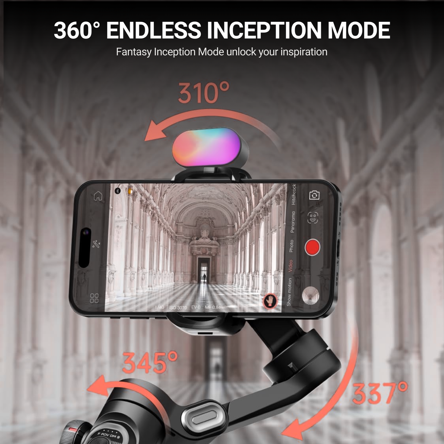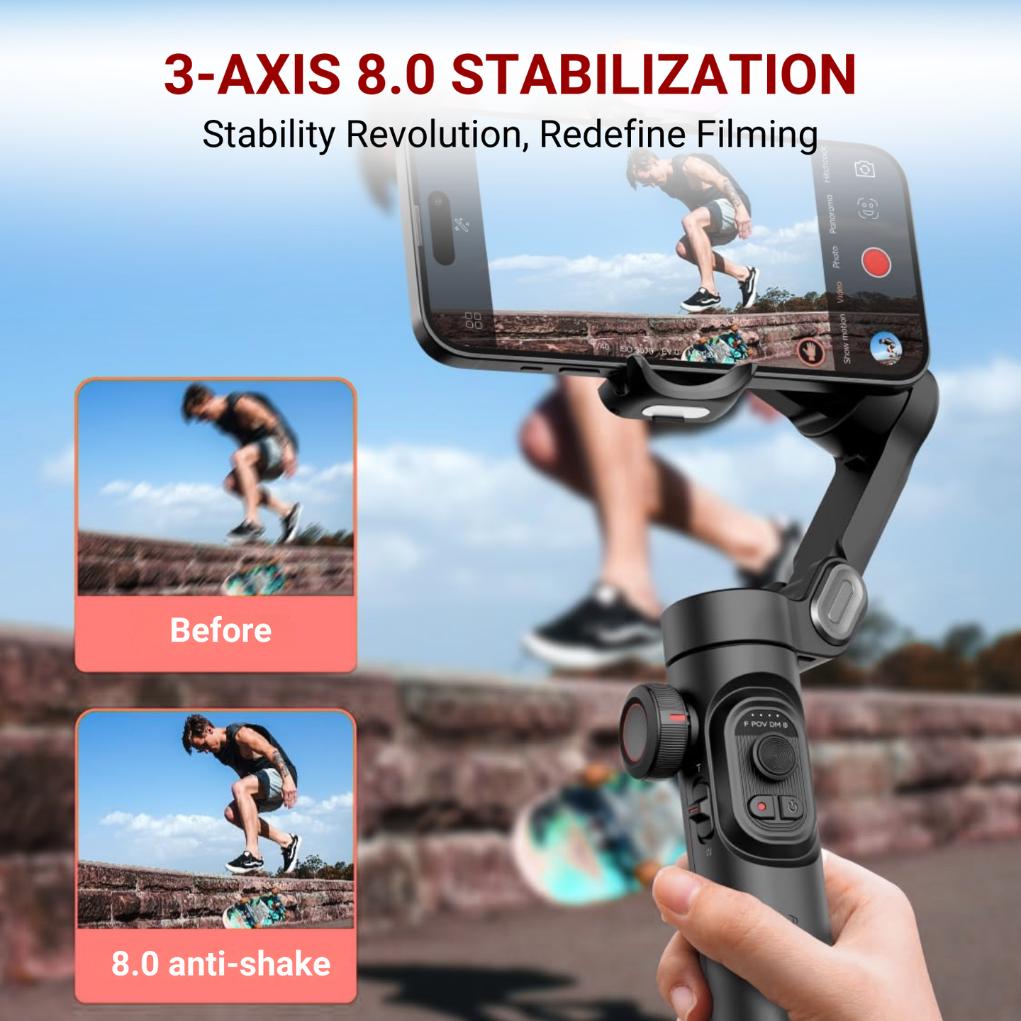 Powerful 3-axis gimbal compatible with most iPhones & Android phones — perfect for vlogging, livestreaming, and action shots.