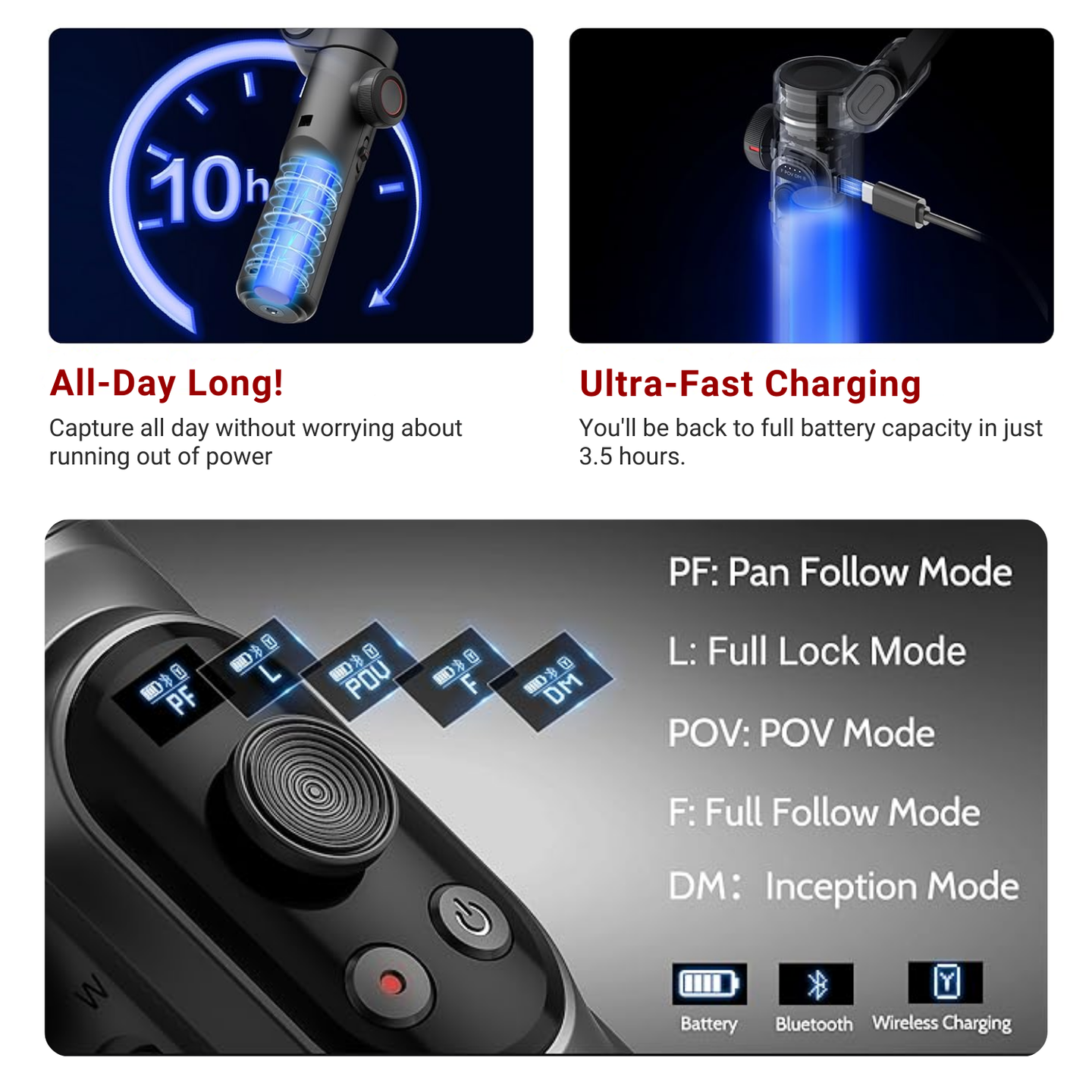 I travel a lot for vlogging and needed something compact. This gimbal folds up small, tracks me perfectly, and lasts all day. Couldn't be happier.