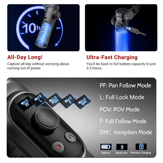 47 reviewsPowerful 3-axis gimbal compatible with most iPhones & Android phones — perfect for vlogging, livestreaming, and action shots. Compact & foldable design, weighs only 0.78 lbs but supports phones up to 250g with smooth zoom/focus controls....Sale price From $168.30Regular price $270.52Sale price From $168.30Regular price $270.52 -