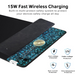 Built-in wireless charger intelligently adapts to your device’s needs, supporting 5W, 7.5W, 10W, and 15W outputs. Works through most phone cases (up to 8mm thickness). -